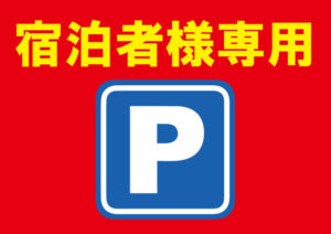 宿泊の皆様の駐車スペースには、こちらのプラカードを設置しておりますので、プラカードのある駐車スペースにお停めください。